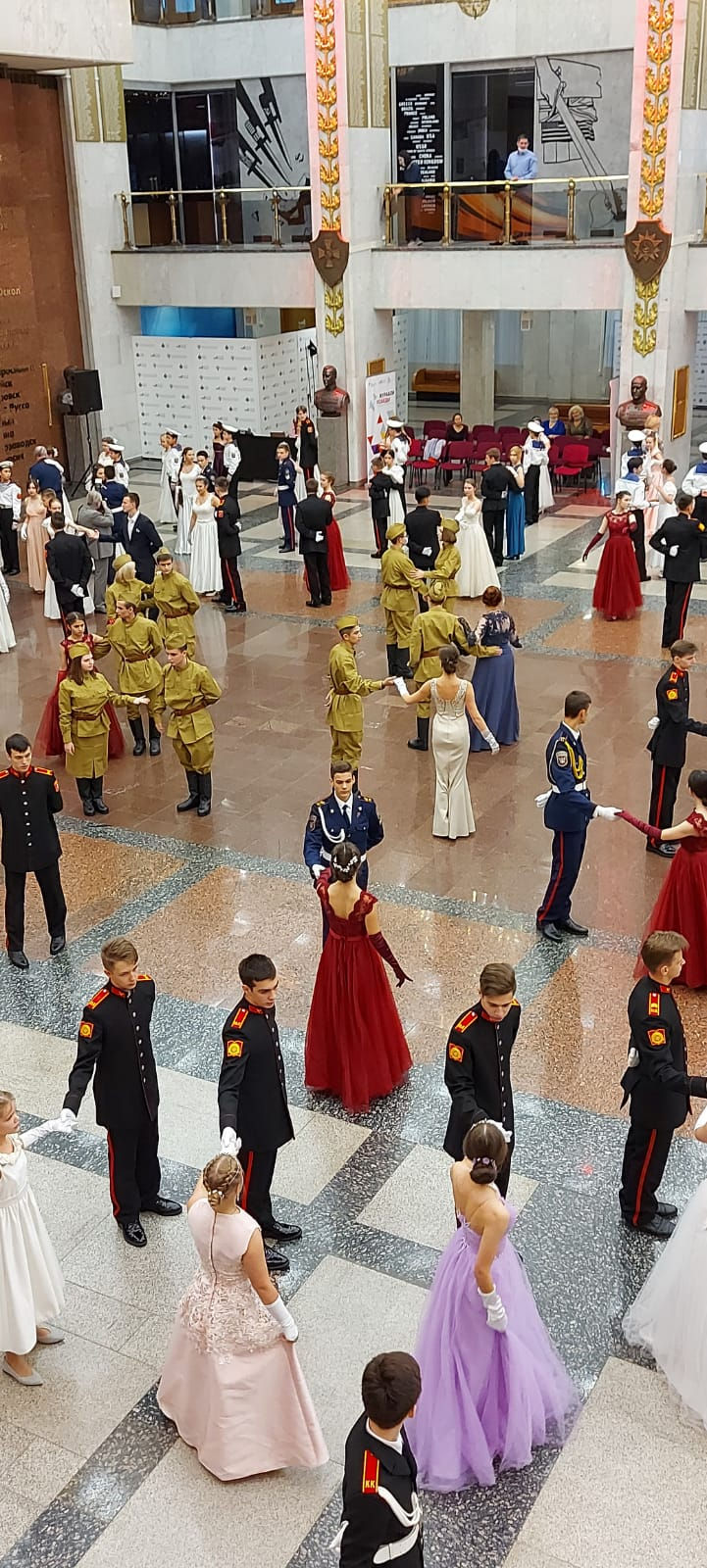 Около сотни пар кружились в вальсе в величественном Зале Полководцев в Музее Победы на Поклонной горе.