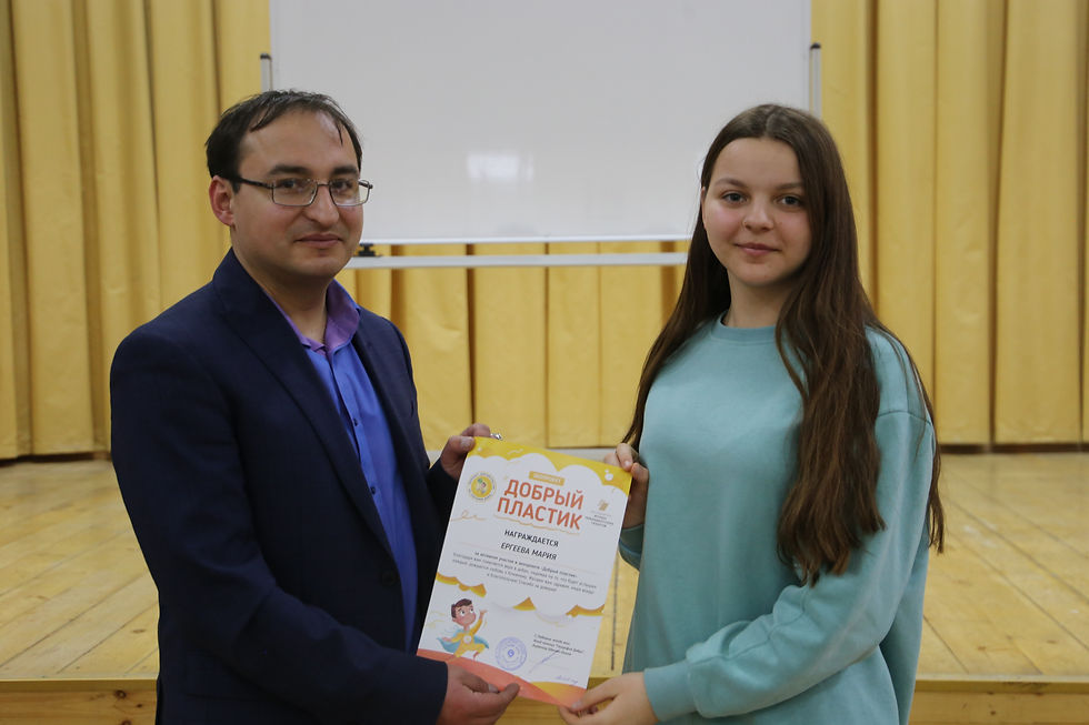 30 марта резидентов волонтерского отряда «ДоброСовы» и активистов школьного самоуправления наградили благодарственными письмами Фонд помощи "География Добра" в рамках проведения I районного экологического фестиваля «Экология добра», направленного на сбор второсортного сырья и оказания благотворительной помощи Сергею Привалову, страдающего заболевание NEMO.
