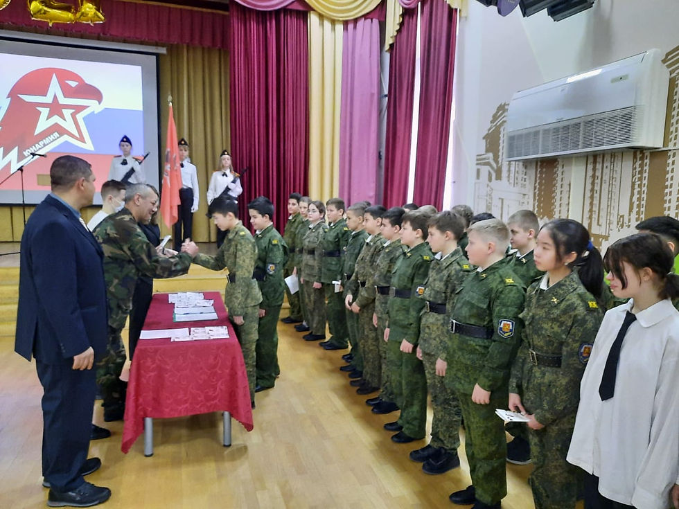 65 обучающихся нашей школы, включая резидентов волонтерского отряда «ДоброСовы» были приняты в ряды юнармейцев.