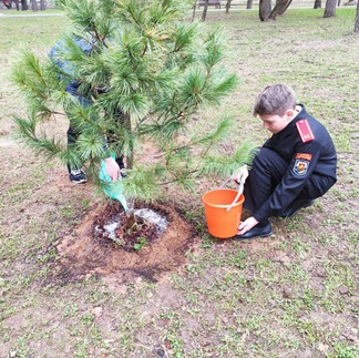 25 апреля кадеты -юнармейцы в составе волонтерского отряда провери экологический рейд по уходу за посаженным кедром.